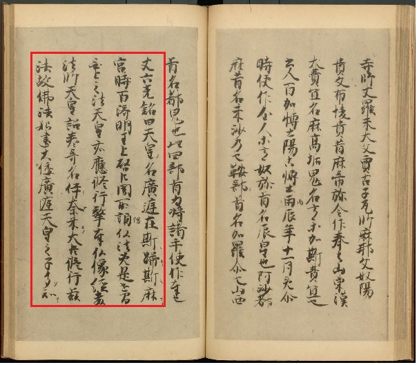 大明2年(458)罽賓国(インドのガンダーラ地方にあった国です)より5人の僧が(扶桑国に)来て、仏典と仏像を齎し出家を勧めたので、風俗が変化した。