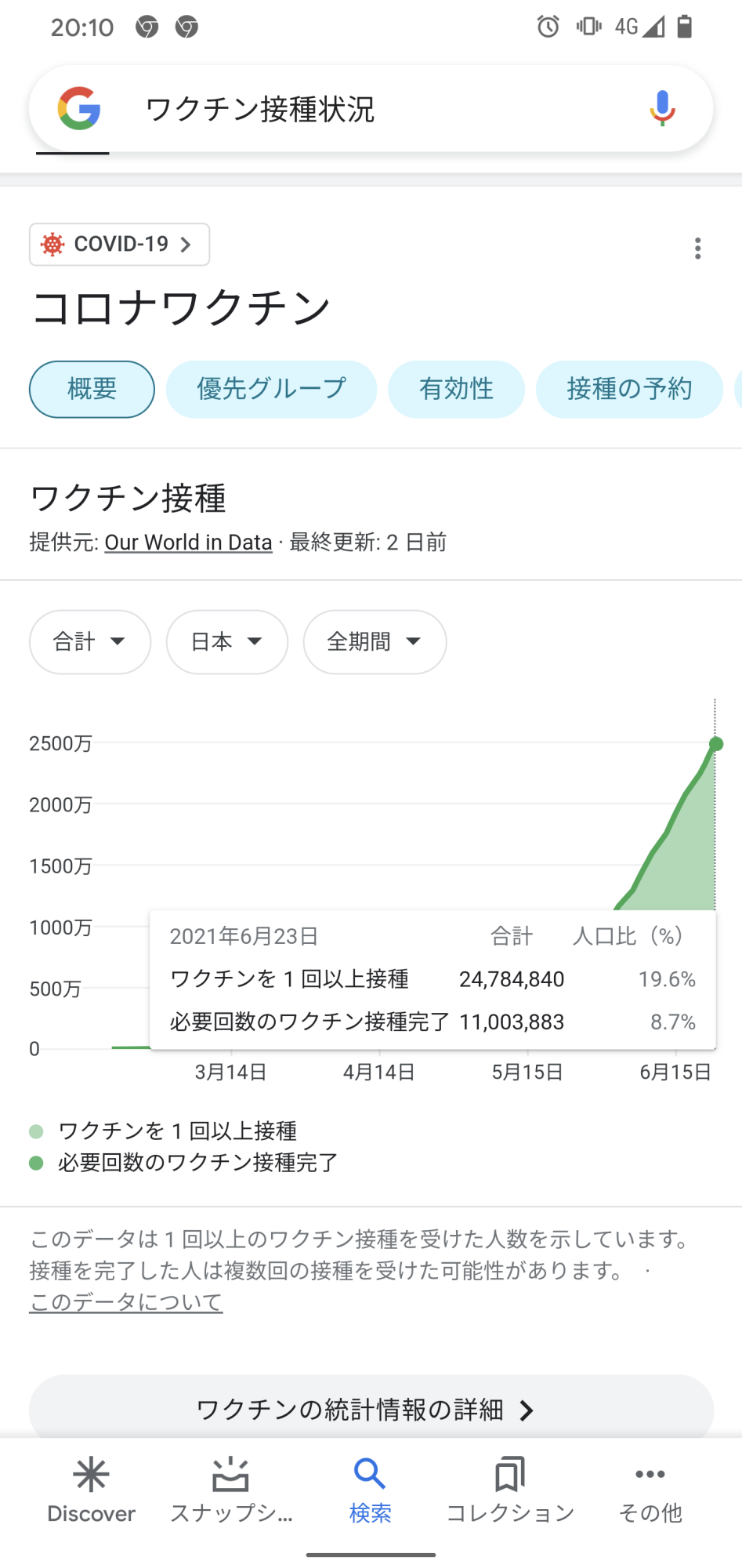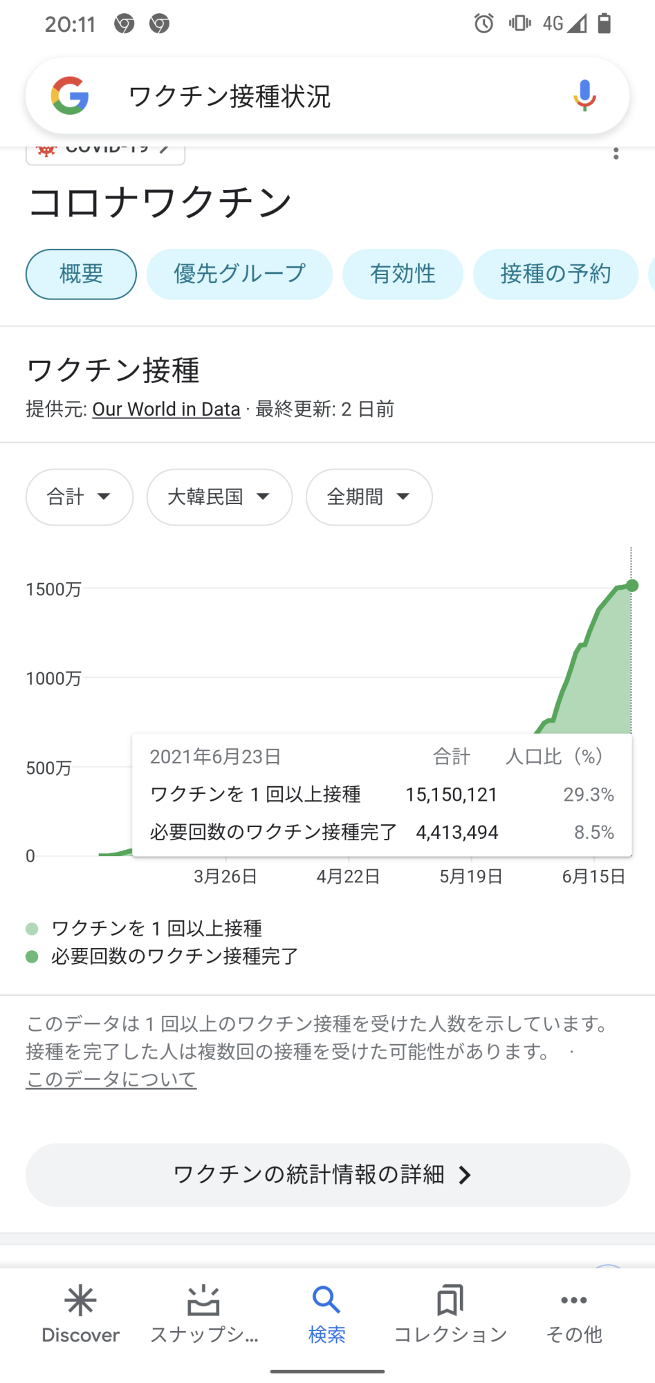 ワクチン接種が進めば治験体になれる人が減るし、日本の4社も焦ってるだろうねぇ。Naverとか見ても摂取数とか予約はもとよりワクチン関連の記事がほとんど無くなってて笑うw