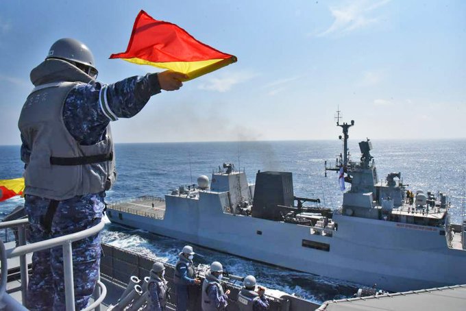 인도 해군 트위터 발로 한국 해군의 대구급 경남함과 인도 해군의 대잠초계함 INS Kiltan이 동중국해에서 연합훈련을 실시했다고 인도 해군 대변인이 밝힘.