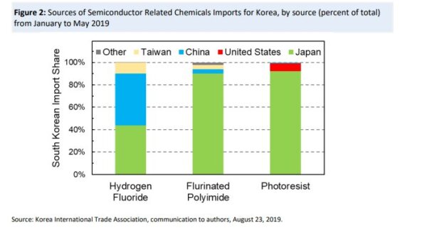 韓国国内では、半導体材料の日本離れが進んだことになっているが、実際は日本企業の世界シェアは圧倒的に高く、迂回輸入が増えただけで、日本依存は変っていない。>>583