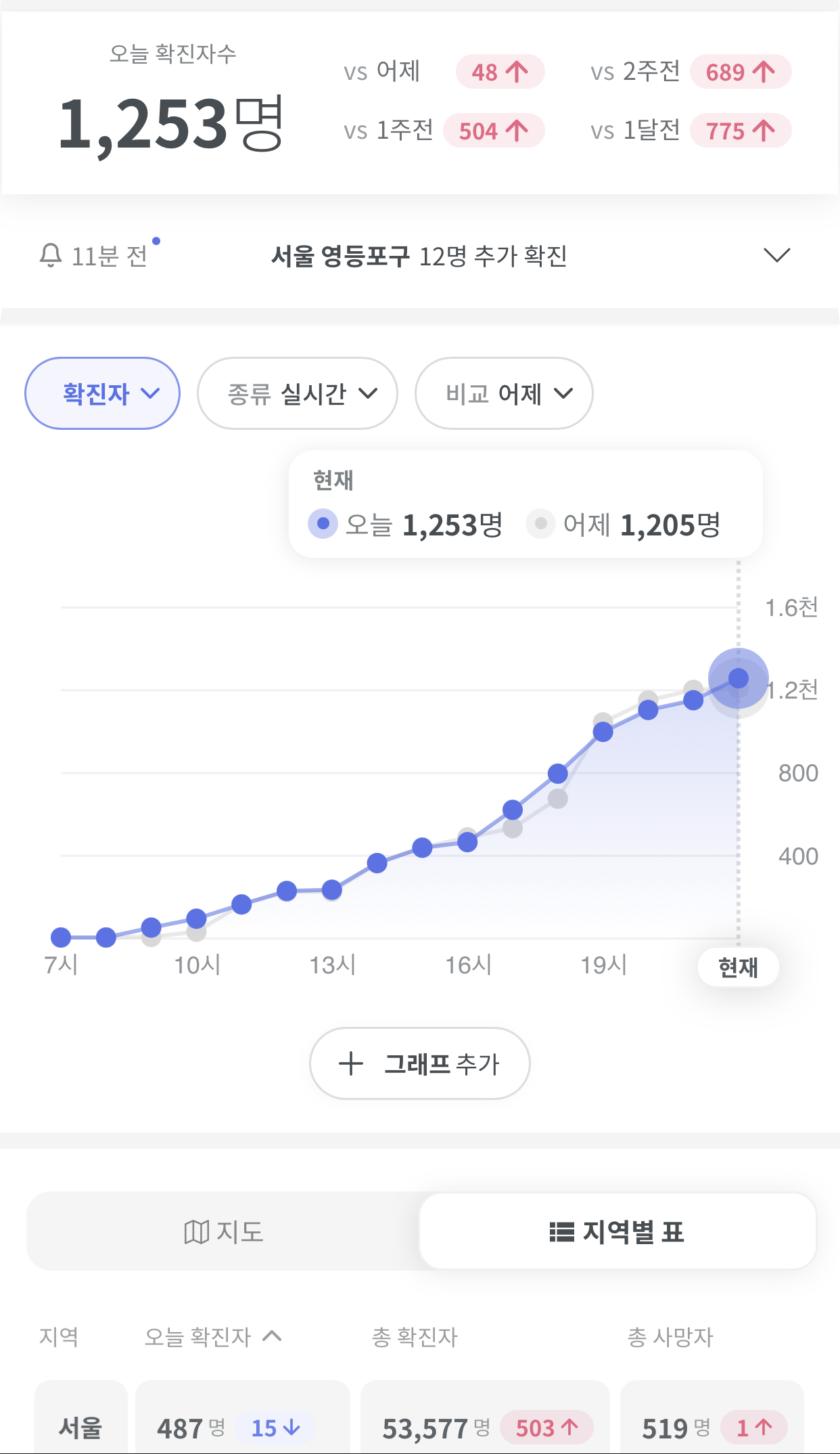 韓国で新型コロナウイルス感染症(新型肺炎)の一日感染者が1000人を超えた。第3波の最中だった1月4日(1020人)以降、184日ぶりで歴代2番目となる。ソウルは568人で歴代最高だ。専門家は、事実上、第4波が始まったと分析する。先の第1~3波よりもはるかに波の高さが大きく、余波もまた長引く可能性があるという懸念が出ている。