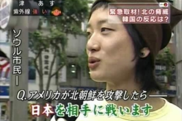 여기서 대답은 "미국을 지지한다" 그리고 "북한을 돕는다"로 나뉘었는데, 그 중에서 약20%를 2ch의 왜인들이 혐한 선동을 위해서, "日本を攻撃"라는 엽기적인 답변으로 합성하면서 유포된 것이다. 사실 글자체부터 달라서, 그것이 합성이라는 것을 단번에 알 수 있다.