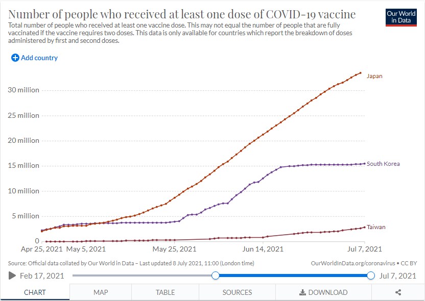 ちょっと前までワクチン接種率は人口比で日本より上ニダ!とか言ってたのに