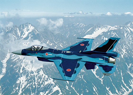 日米共同開発されたF-2戦闘機は、1987年に日本側メーカーの三菱重工が製造、納入が開始された。機体の源流は米ロッキード・マーチン(旧ジェネラル・ダイナミクス)社が製造したF-16戦闘機、これをベースに開発した戦闘機である。