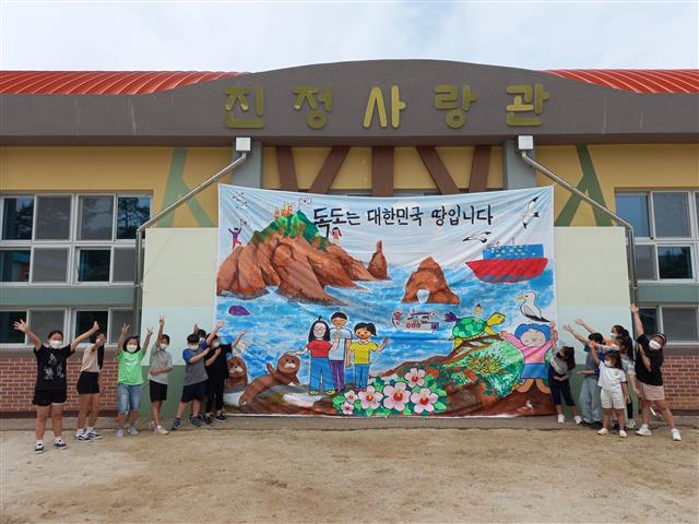 慶尚南道河東郡錦南面のチンジョン小学校の金ヘンシク校長は6日、全校生29人が一緒に描いた横8メートル、縦6メートルの大きさの独島の掛け絵を見ながら、このように切り出した。 キム校長は「私たち生徒が『歴史をきちんと認識できない日本に独島の主人としての自尊心と意志を見せよう』という気持ちで2カ月間1日も欠かさず昼食時間などを惜しんで絵作業に参加した」とし「生徒たちにとって生きた歴史教育の時間だった」と話した。