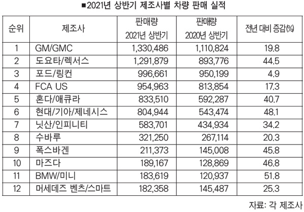 2위에 오르는 기염을 토했다. GM과 함께 양대 제조사인 포드/링컨은 올 상반기 판매량이