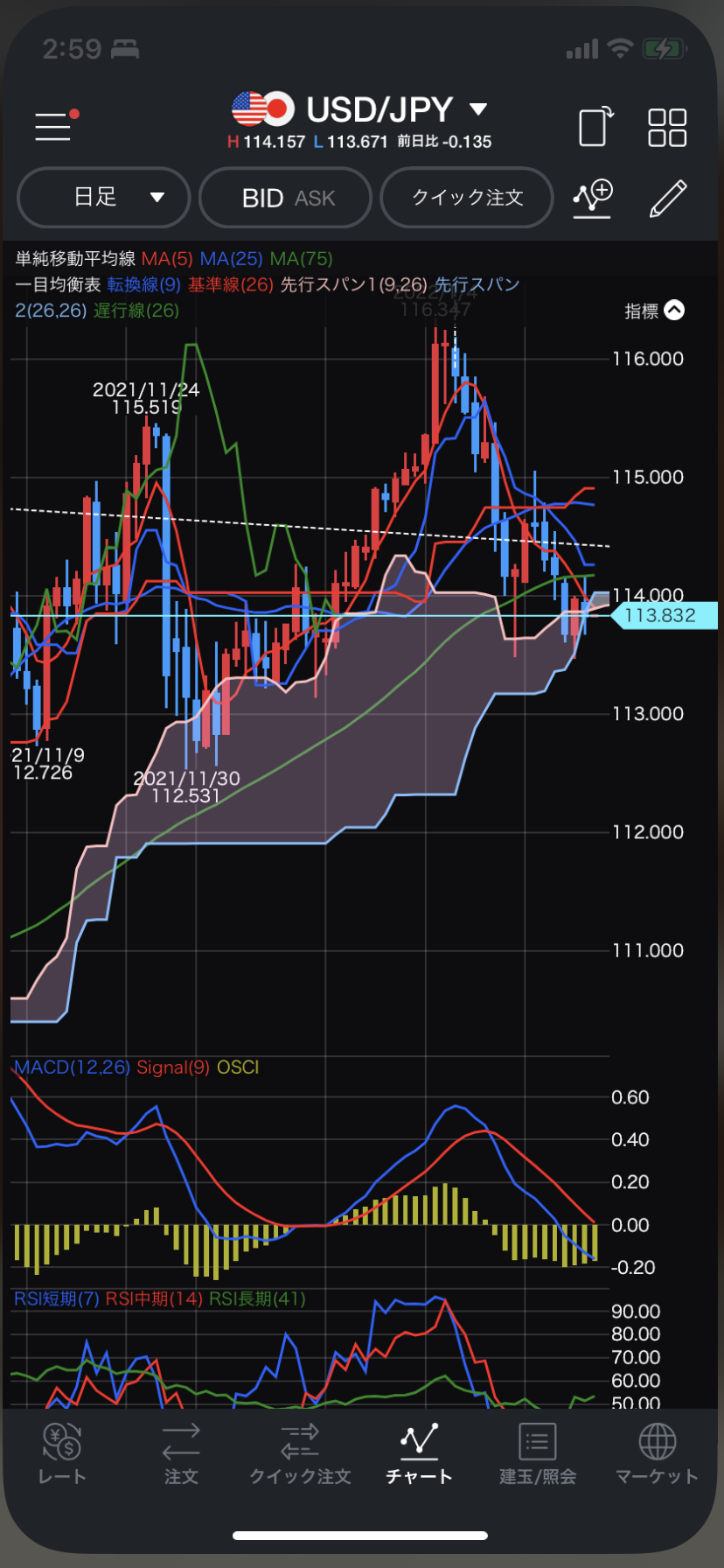 この下がりのラインが23.6%に差し掛かっていて