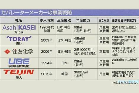 東レは、湿式分離膜の世界市場で、旭化成とSKアイテクノロジーに並び3強の一角を占める