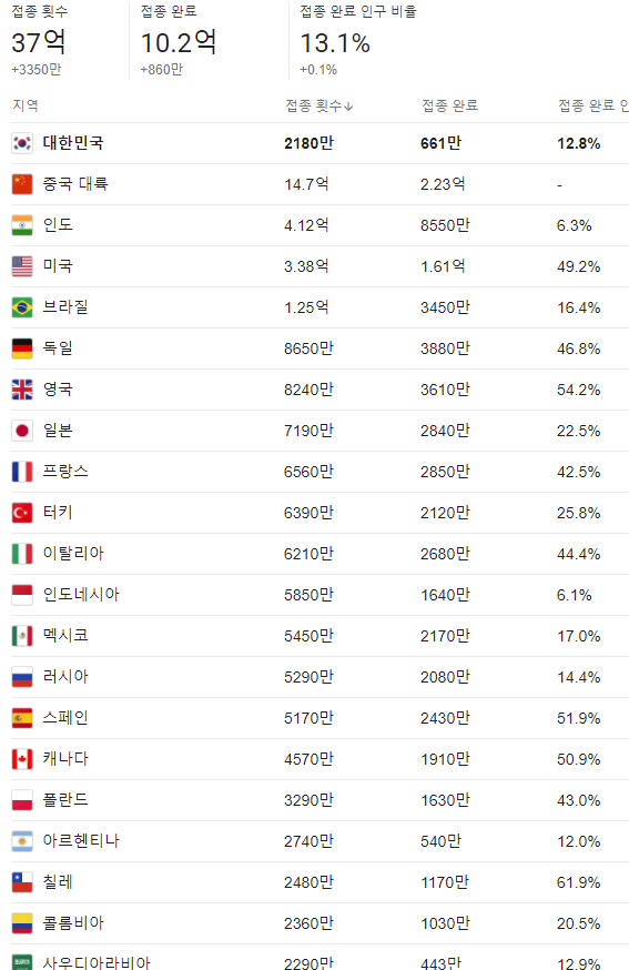 韓国はガチでダメすぎだな人口が少ない方なのに接種率が低い