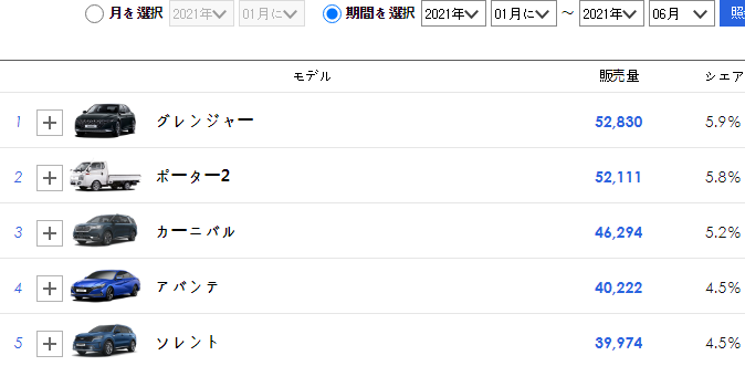 その中に韓国車は3車種しか入ってないんだが?