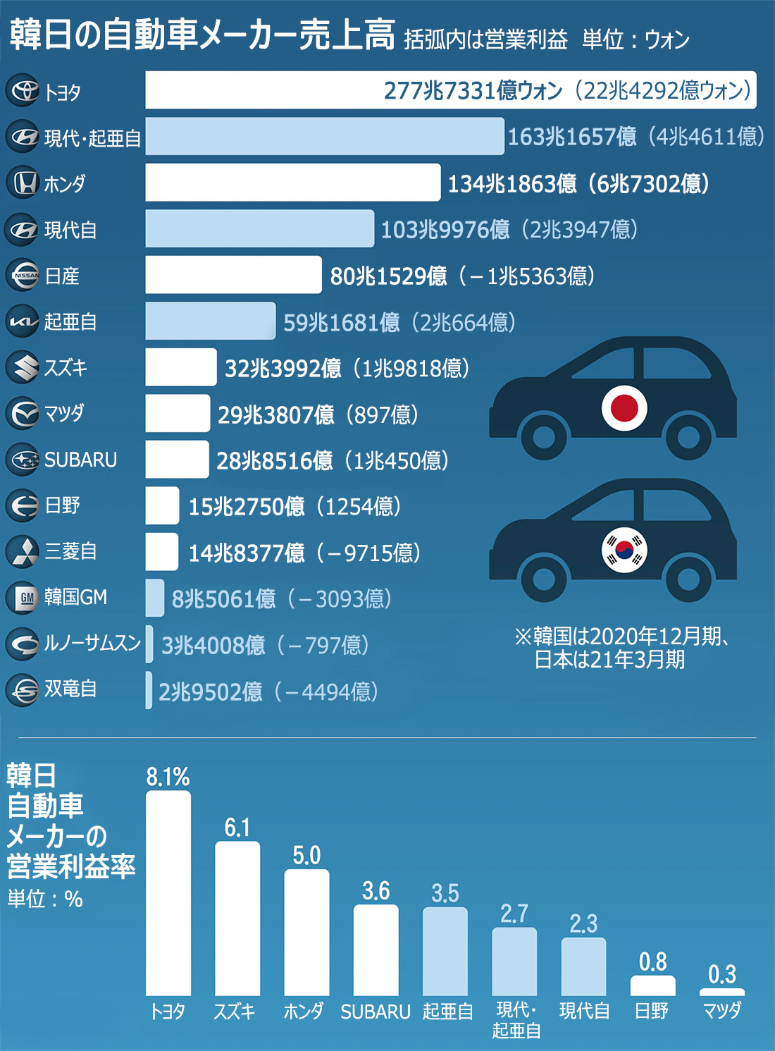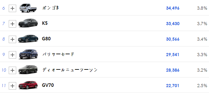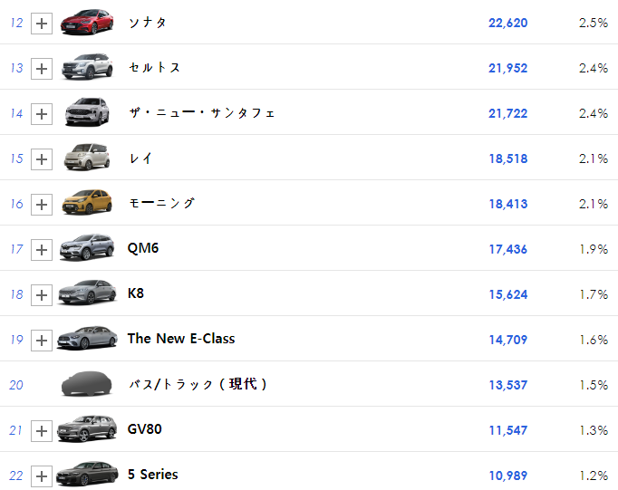 그러나 여기서 자세히 살펴보면 한국은 대부분이 비싼 SUV, 고급차 위주로 많이 팔린다. 가격이 저렴한 소형차는 거의 팔리지가 않는다. 반면 일본은 대부분이 가격이 싼 소형차다. 이것이 차이 구매력의 차이