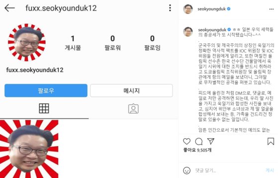 この日、徐教授のインスタグラムには「日本右翼勢力の総攻勢がまた始まった」とし「国際オリンピック委員会(IOC)会長(トーマス・バッハ氏)と委員に旭日旗デモに対する措置を取るべきだという抗議のメールを送ったところ、無差別的な攻撃を浴びせている」というコメントが掲載された。