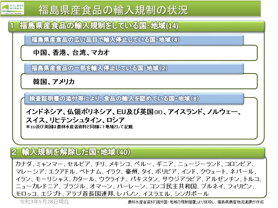 台湾は日本産水産物の輸出を許可しているよ。