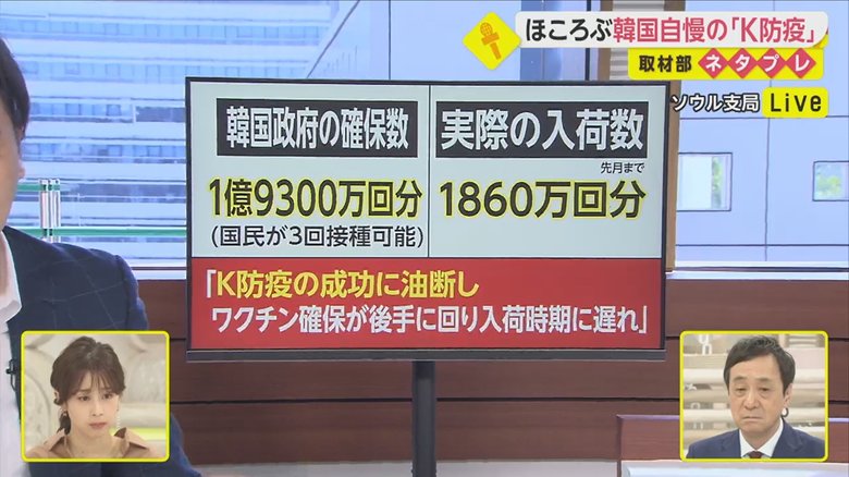 韓国の感染予防対策「K防疫」が苦境を迎えている。文在寅政権は「K防疫は世界一」と自画自賛したが、ワクチン確保に苦戦。接種完了者の割合は全体の約13%にとどまり、感染者も急増していて、ワクチンをめぐる激しい争奪戦も起きている。