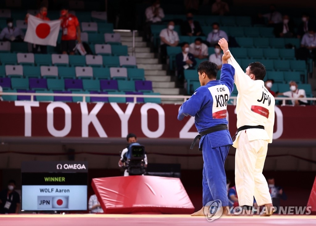 ウルフの手を掲げた柔道銀・趙グハムに「マナーまで輝いた試合」 文大統領