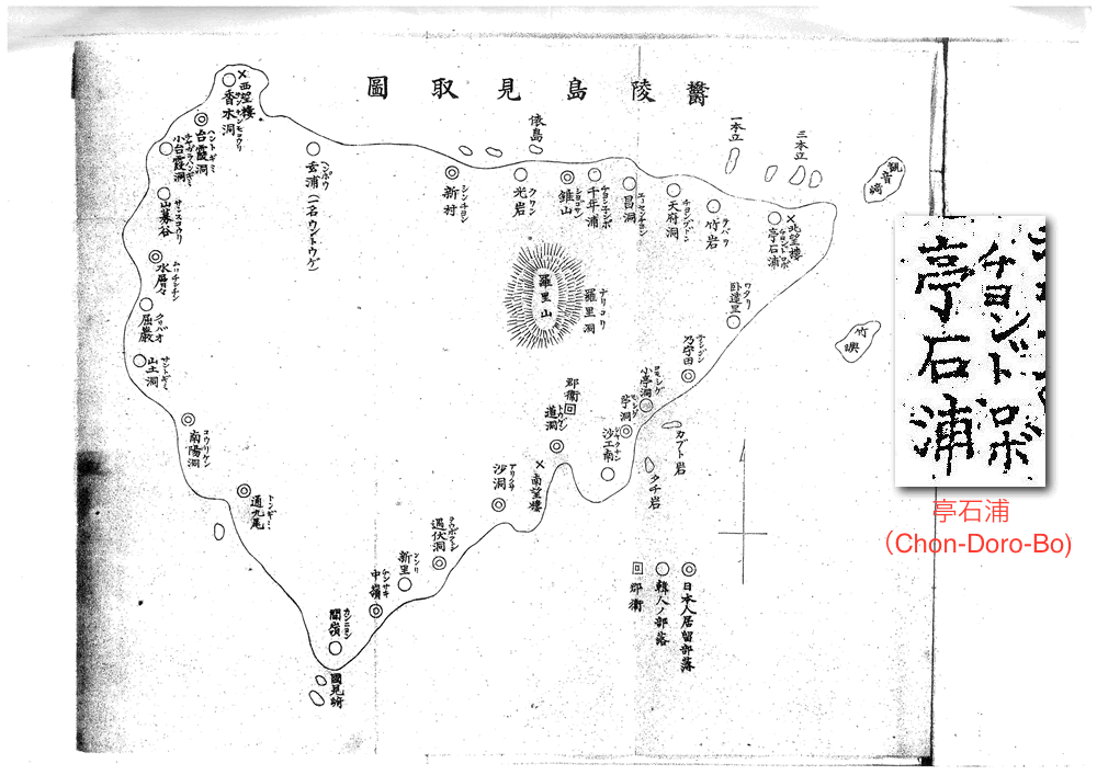 4.1906年の鬱陵島現地調査に基づく「竹島及鬱陵島」にて、石の発音を「DOL」と記録している。(「亭石浦」の地名の発音をChon-Doro-Poと記録)