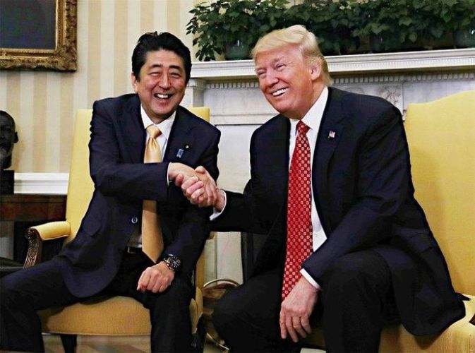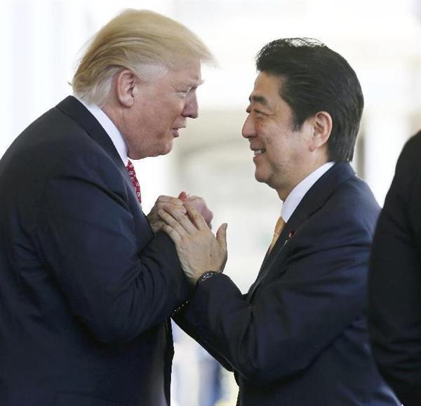 安倍 「ト、トランプちゃん 握ってる手が痛いよ 判ってるよ お金でしょ」아베 총리: 한국 보고있어? 이것이 일본이다!