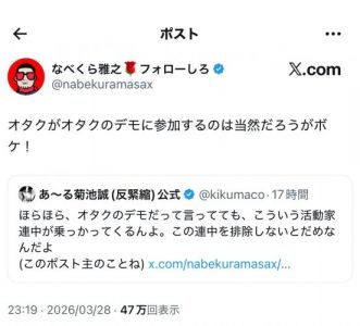 反政府、反自民、反高市なら、オタクのふりでもどうでもいい細かいことまでOKな日本人ではない組織