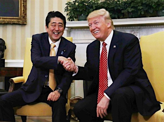 安倍晋三首相は10日午後(日本時間11日未明)、トランプ米大統領とホワイトハウスで初の首脳会談を行い、日米同盟と経済関係を一層強化していくことで一致した。会談は昼食会を含め約1時間40分に及んだ。両首脳は成果文書として、安全保障と経済の両面での協力強化をうたった共同声明を取りまとめた。