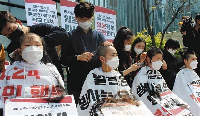 反日運動では、女子大生が断髪式で丸刈り坊主になっているのにw朝鮮人