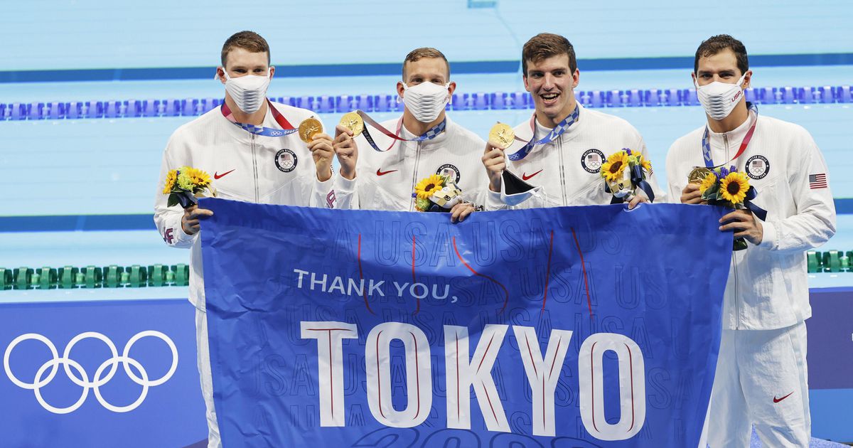 競泳米国チームが感謝のフラッグ コロナ禍の開催に