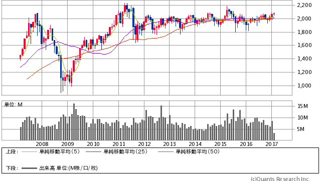 5年間2000前後というボラティリティの無さ。つまり買いも売りも無いということ。