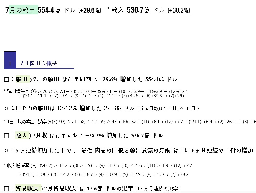 - 2021년 7월 수출액 (554억 4000만 달러) (역대 1위)