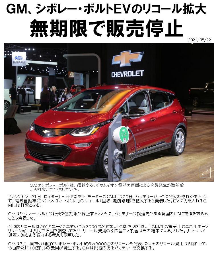 https://jp.techcrunch.com/2021/08/24/2021-08-23-gm-says-it-will-seek-reimbursement-from-lg-chem-for-1b-chevy-bolt-recall-losses/ギャラクシーもまた発火したし安定の朝鮮製品^_^