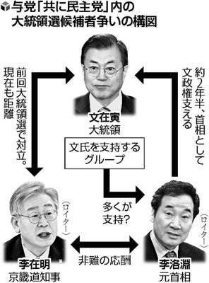 【ソウル=上杉洋司】来年3月の韓国大統領選に向け、文在寅(ムンジェイン)大統領(68)の左派系与党「共に民主党」の候補者争いが激化している。支持率で先行する李在明(イジェミョン)・京畿道知事(56)と、追い上げる李洛淵(イナギョン)・元首相(68)の非難合戦の様相を呈しており、本選にしこりを残す懸念が強まっている。