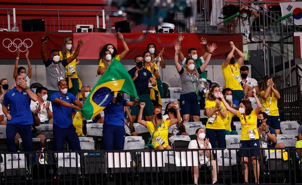応援団はブラジル選手が得点した際に踊ったり、叫びながら国旗を振る姿があったりしたとし、声を発しての応援は東京五輪プレーブックに反する行為だとしている。