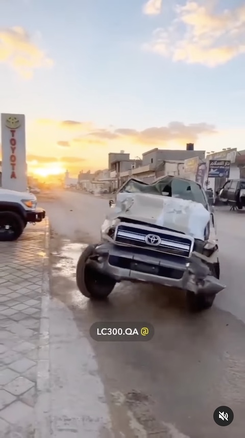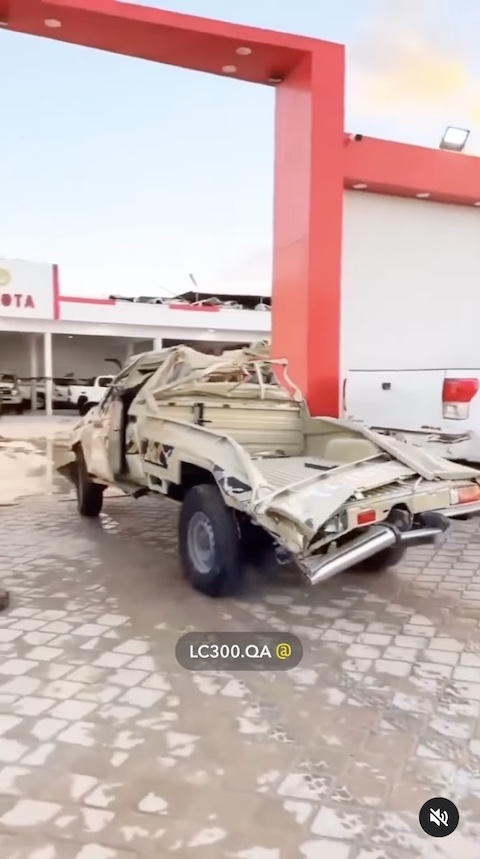 話題になっているのはInstagramユーザー・KHALID AL AJMI(lc300.qa)さんが投稿した動画です。写っているのは海外向けに展開されている2人乗りのピックアップトラック仕様のランドクルーザーで、激しい事故によって損傷しているものの、自走している様子が確認できます。