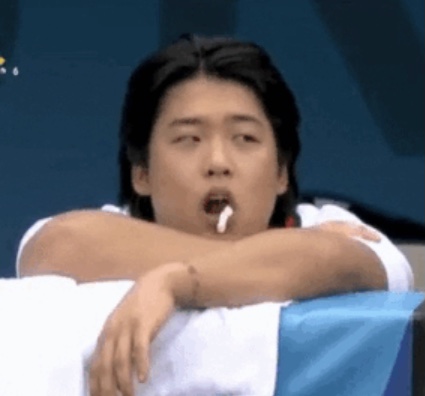 ガム噛みながら胡乱な状態になりたい気持ちもわかるwガムをくちゃくちゃ噛むのは他の選手達もやってたろ。