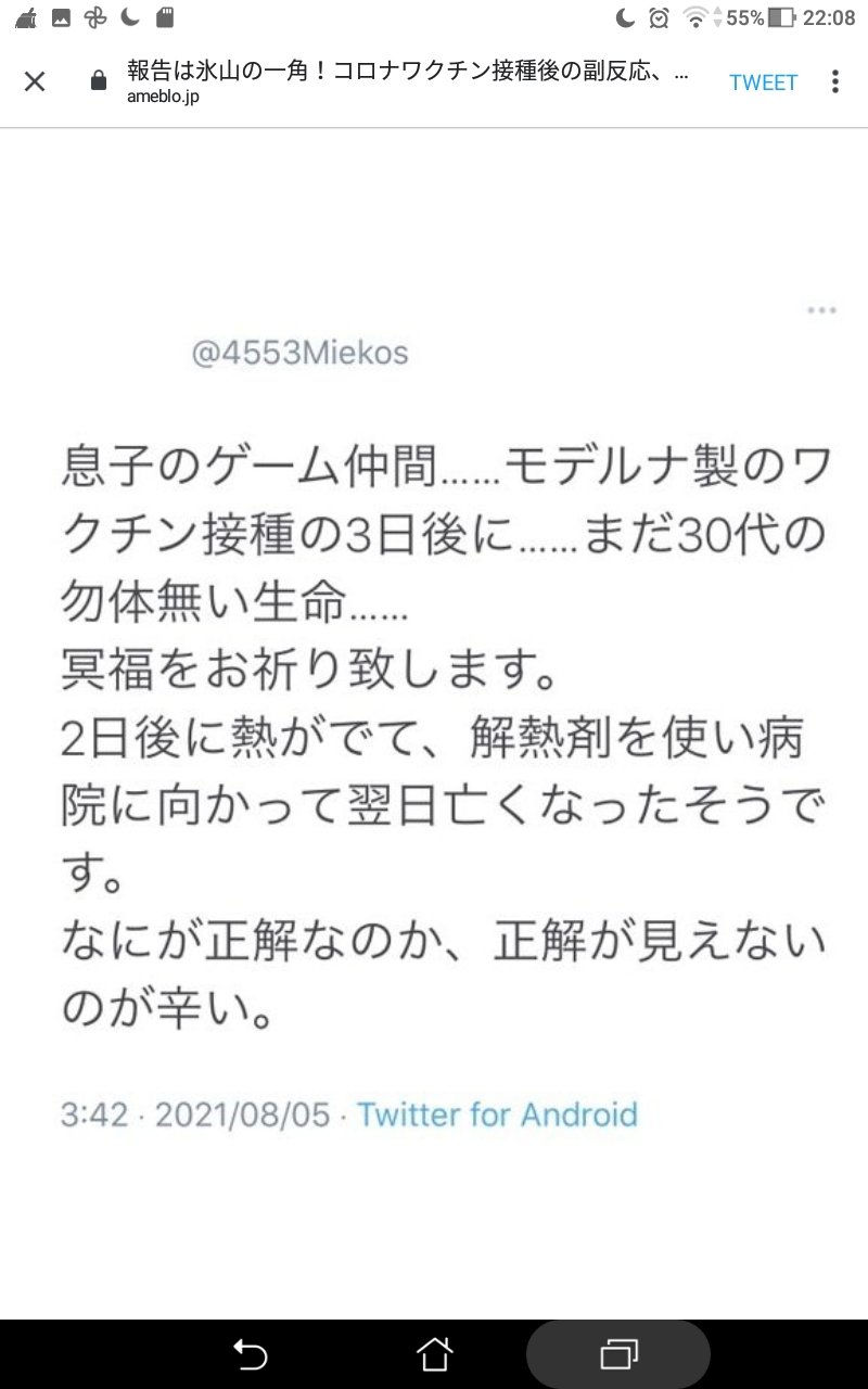 「まだ30代でモデルナ接種3日後に亡くなりました」
