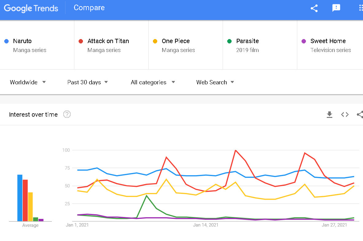 2022年になると「ウ・ヨンウ弁護士は天才肌」など話題になったが、くしくもこの頃から日本の作品がTOP10の大半を占めるようになり、「不時着」「梨泰院」ほど根強い人気を誇る韓国ドラマは激減した。期待値の高かった「京城クリーチャー」でさえも不発に終わっている。