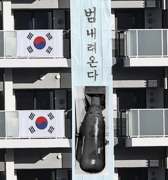 「ボムを使った理由は私たちも分かりません。垂れ幕を作った大韓体育会が理由を公表してませんから。ただ、一部ネチズンの間ではボムはBomb(爆弾)を意味する、つまり『日本に爆弾が落ちる』、過去を反省せずに韓国にマウンティングする日本には爆弾が落とされて当然と解釈されています。