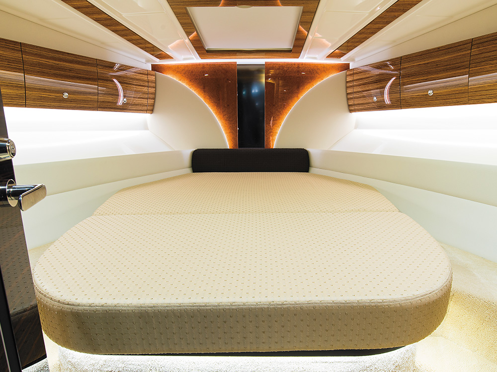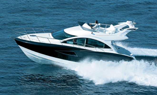 外観は立体的なフォルムと曲線美を追求し、高性能を予感させる優美かつ躍動感のあるスタイリングを実現。バウキャビン(船室)は、日本の「和」を意識した落ち着きのあるデザインを基調とし、黒のガラスフローリングや情緒感のある照明により、非日常的な空間を演出したといいます。
