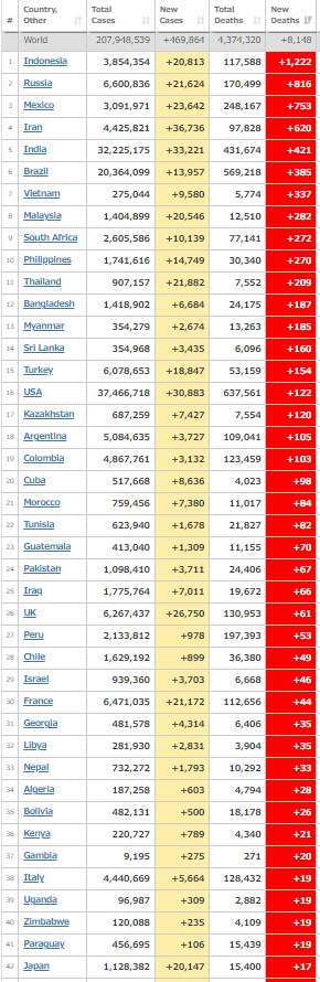2回目の接種まで完了した人(ヤンセン製の1回接種含む)は973万5672人で、人口の19.0%にあたる。日本の摂取数の半分以下だな!