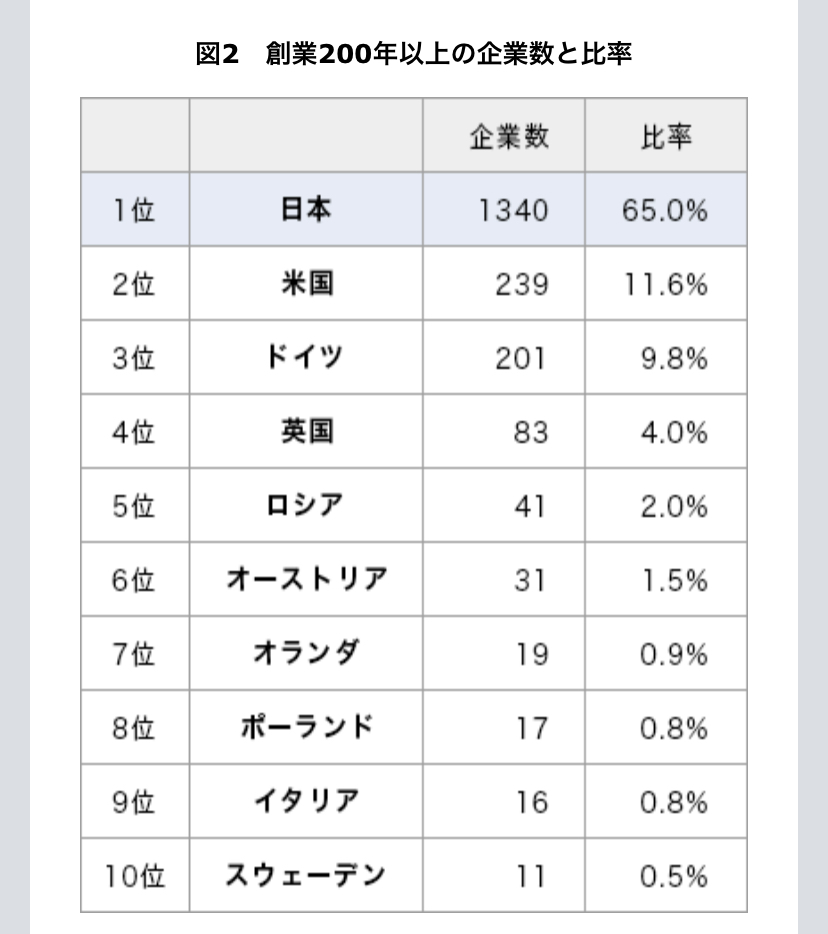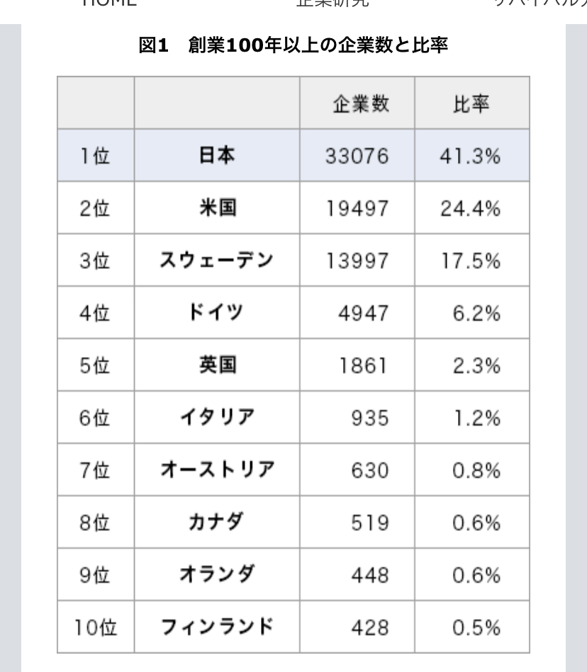 潰さなくて良いの?100年企業と200年企業の国別のものがあった