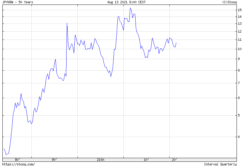 これが韓国ウォン対日本円の軌跡だ。