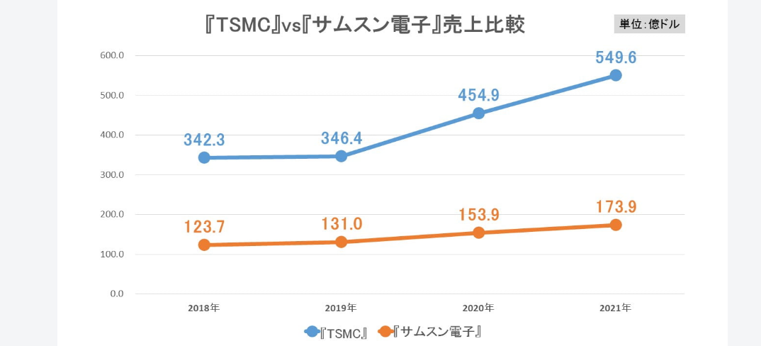 画像①『TSMC』と『サムスン電子』のファウンドリー(半導体の受託生産)事業の売上
