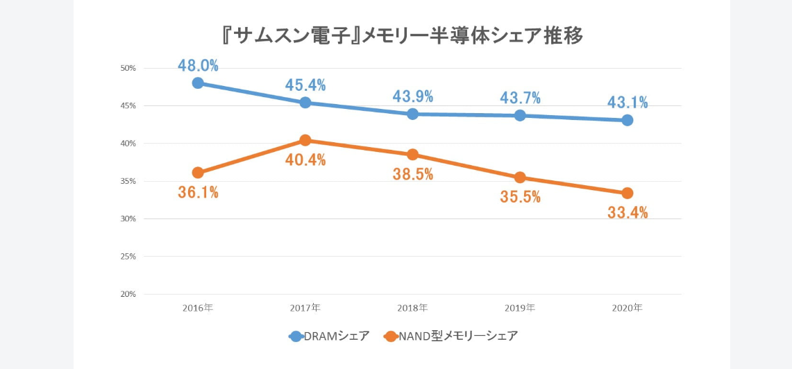画像②『サムスン電子』のメモリーシェア DRAM NAND