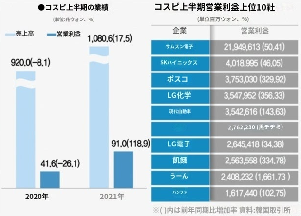 지역별로는 한국과 대만을 포함한 아시아태평양 지역이 전체 지역 중 가장 높은 성장률인 27.2%를 기록하며 전 세계 매출의 62.6%를 차지할 것이라고 WSTS는 분석했다.それでも、株価が下がる韓国企業。www