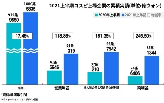 코스닥협회가 발표한 ‘2021사업연도 상반기 실적현황’ 자료에 따르면 연결기준 사업보고서를 제출한 코스닥 1011사의 영업이익은 7조6358억원으로 전년 동기 대비 54.21% 증가한 것으로 집계됐다. 같은 기간 매출액은 107조9642억원으로 17.57% 늘었고, 순이익은 6조8708억원으로 157.73% 증가했다.>>18