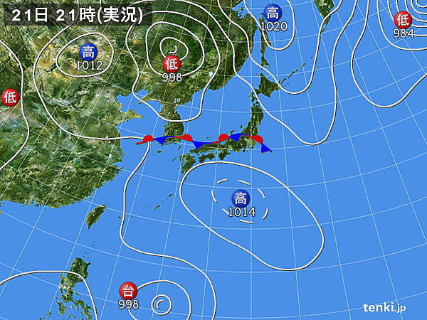 일본도 더위는 꺾인 것인가?朝鮮半島上空には寒気が居座っていて、南の海上から流れ込んだ暖湿気とぶつかって西日本に多量の雨を降らせているのさ。