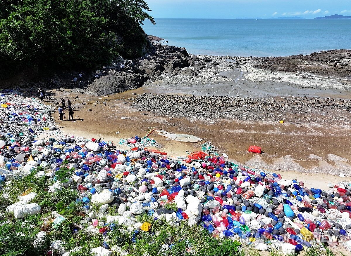 韓国最西端ペンニョン島に押し寄せる中国のごみ…海兵隊も清掃に乗り出す