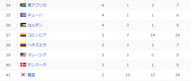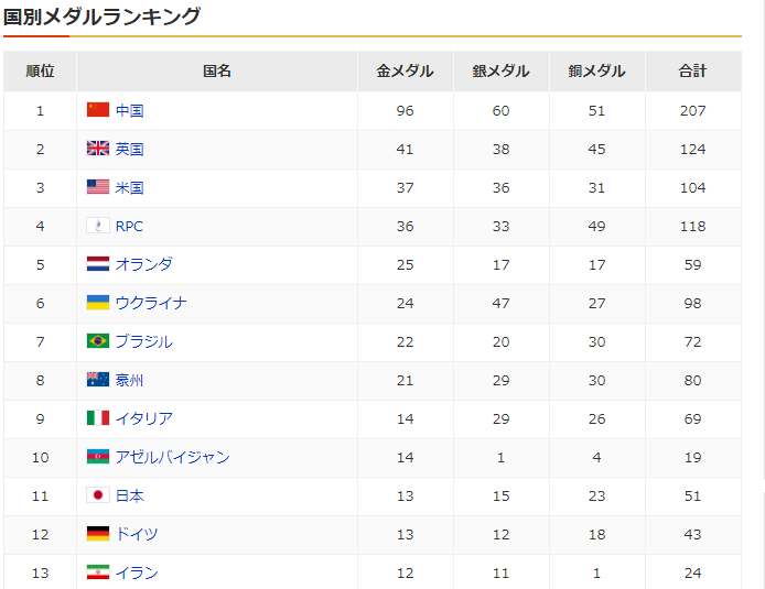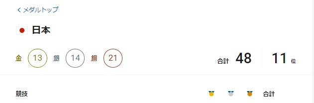 色を区別しないメダルの数による順位が15位タイ(24個)に入ったことだけがせめてもの救いだった。