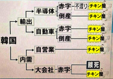 韓国の失業者が増える話なんだけど、人畜には理解できないか。全員チキン屋で消費者ゼロ∀∀∀