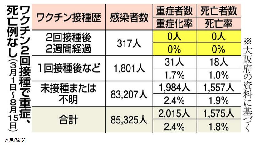 コロナワクチン2回接種で発症0.4% 重症・死亡なし 大阪府分析