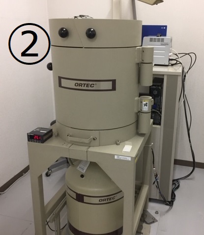 で、「食品」や「土壌」、「海水」などの放射線量(放射能の強さ・ベクレル)を測定する装置は様々な種類がありますが、例として①、②ような放射線測定装置を使って精密に調べています。