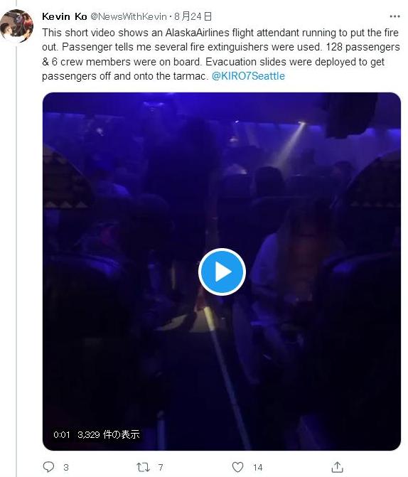 アラスカ航空の機内でGalaxy A21が発火したことで、乗客が緊急脱出